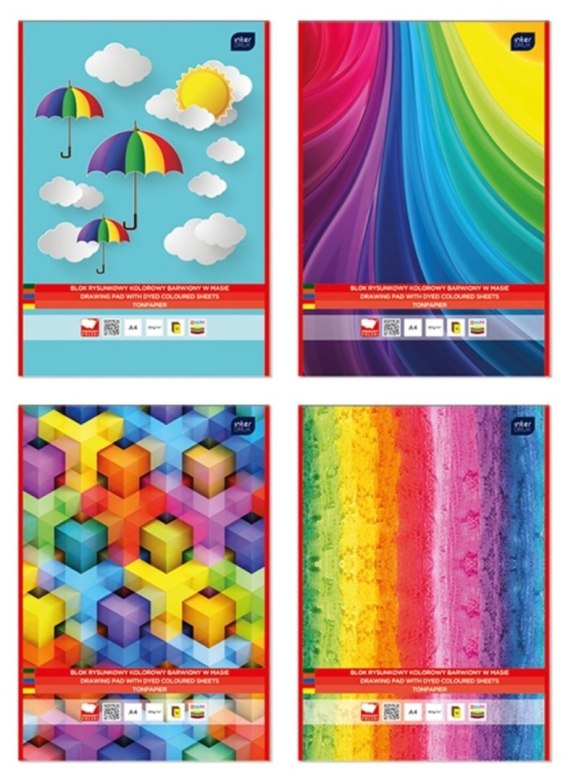 10 kolorowych kartek. Wysokiej jakości papier. Całość na podkładzie z grubej tektury. Kolorowe okładki z papieru kredowego, przyciągające uwagę dzieci.