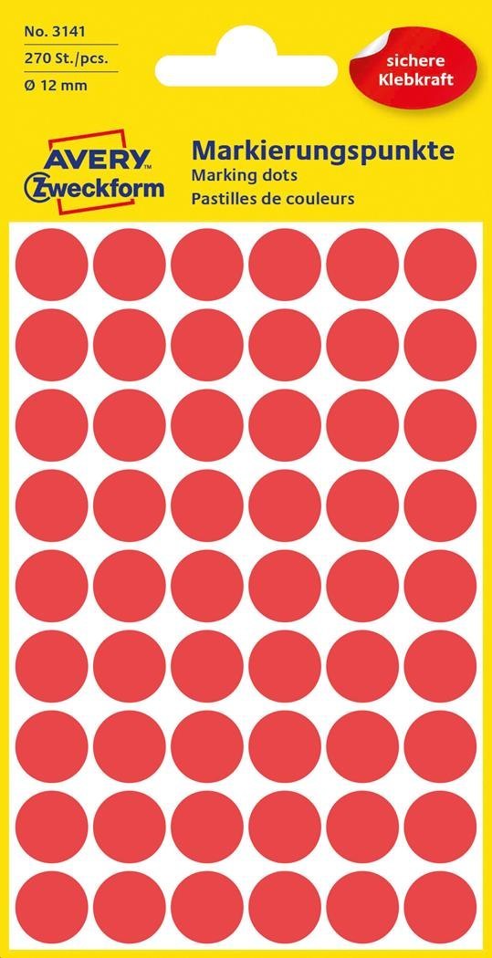| Nazwa B2B | Kółka AVERY ZWECKFORM do zaznaczania kolorowe 270 etyk./op., _12 mm, czerwone |