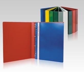 Wykonany z wysokiej jakości folii PCV z przezroczystymi kieszeniami na przedniej okładce i grzbiecie, które umożliwiają umieszczenie materiałów reklamowych. Wyrób wyposażony w mechanizm 4-ringowy w kształcie litery _D_. Szerokość grzbietu 6,5cm. Zamek umieszczony na tylnej okładce.