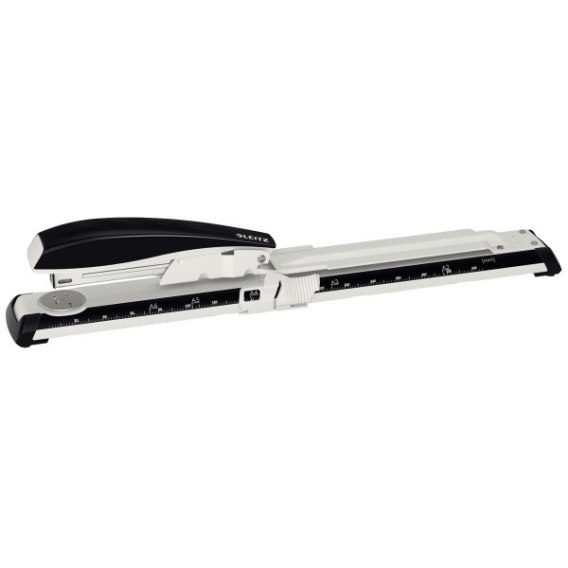 Zszywacz długoramienny 5560 Leitz_- do zszywania wzdłuż linii złożenia kartek_- wykonany z metalu oraz plastikowych elementów_- innowacyjna technologia precyzyjnego prowadzenia zszywki, zapobiegająca jej zacinaniu się_- łatwy do ustawienia format zszywania (od A6 do A2, US-norm i folio, skala calowa i milimetrowa)_- zszywanie otwarte i zamknięte - łatwe do zmiany poprzez przekręcenie metalowej stopki_- ładowany od góry, mechanizm otwiera się o 180_, blokada zabezpieczająca przed zamknięciem zszywacza_- rekomendowane użycie zszywek Leitz - głębokość wsuwania kartek 299 mm_- jednostka sprzedaży 1 sztuka